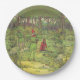 arte vintage com pintura de robin hood em folclore inglês e um herói popular popular popular popular em tempos medievais, com seus homens felizes na floresta praticando arqueria enquanto os homens se sentam, se levantam e o observam.