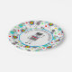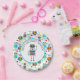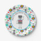 Placas de papel de festa de aniversário personalizadas para robôs. Cores: azul, amarelo, verde limão e vermelho.
