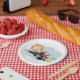 Um homem voando com um foguete nas costas. Este design parece realmente eficaz nestas placas de papel