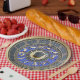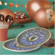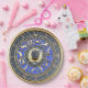 Conjunto de oito placas de papel de 9" com uma imagem de uma roda zodíaca azul e dourada. Ver pote de doces, caneca, azulejo de cerâmica quadrada e portas copos correspondentes. Veja toda a coleção Gemstones & Medallions Plate na seção HOME.