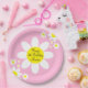 Esta placa adorável apresenta flores brancas com fundo de rosa claro calmante e rico para personalizar nome e ano.
