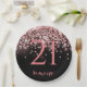 Para um aniversário elegante de 21 ruas (ou qualquer idade). Um fundo rosa dourado e de poeira estelar rosa brilhando. Decorado com rosa dourado, faíscas brilhantes cor-de-rosa. Personalize todos os detalhes, inclusive a idade conforme suas necessidades. O nome é escrito com um script de estilo manuscritoParte da coleção de celebrações do Rosa gold glam aniversário de 21 anos