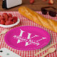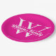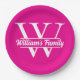 Prato De Papel Rosa e Branco | Monograma de Nome de Família Simpl