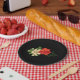 Prato De Papel Rosa vermelha e fundo preto das margaridas