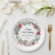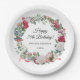 Prato De Papel Rosa vermelha e Holly 70 Birthday Elegant