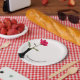 Prato De Papel rosa vermelha solteiro no vaso preto