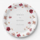 Prato De Papel Rosa Vermelho e Creme Presos, design floral de Cas