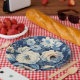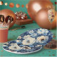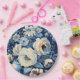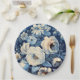 Prato De Papel Rosas Brancas no Fundo Azul Indigo