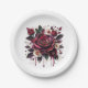 Pratos de papel com lindas rosas burgundy, folhagem verde-sage e ilustração em aquarela de pérolas. São lindos para casamentos, jantares de ensaio, chá de bebê ou aniversário ou festa de aniversário de casamento.
