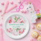 Prato De Papel Rosas Cor-de-Rosa & Folhagem Verde Casamento Perso