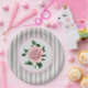 Linda Placa de Papel Convidados Cinza e Rosa com Centro de Rosa Rosa para Chuveiros ou Brunches