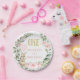 Roses Rosa Algum Coelhinho Virando Um Papel de primeiro aniversario Placa Um Coelhinho de Coelho Doce Teve o primeiro prato de papel de aniversário para uma menina apresentando um coelho, um balão rosa e uma coroa de folhagem com rosas rosa. Ideal para uma festa de aniversário matemática de coelhinho de 1º aniversário para meninas.