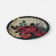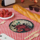 Rosas vermelhas Moody Gótica com um plano de fundo de padrão verificado.