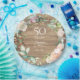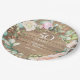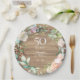Com uma delicada grinalda floral em aquarela, este lindo prato de papel de folhagem botânica de aniversário de 50 anos de casamento pode ser personalizado com os detalhes do seu aniversário especial em tipografia branca elegante em um fundo com efeito de painel de madeira rústica. Concebido por Thisisnotme©
