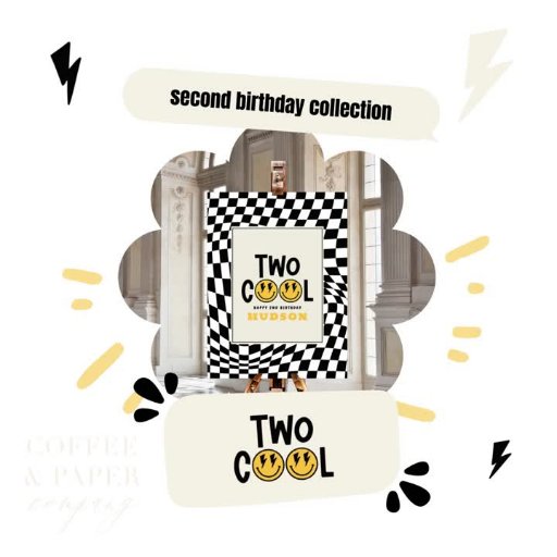 2nd birthday smile face retro black white groovyCriado por Stacy Speakman-Cooke