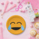 Essas lindas placas de papel fazem os suprimentos perfeitos para festas de aniversário temáticas emoji. Apresenta uma ilustração desenhada à mão de um smiley face laranja risonho. Este emoji hilário está rindo, então duro há lágrimas nos olhos dele.