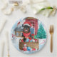 A perfect Christmas gift idea for your dog lover friends, A cute dog sitting in snow beside Christmas tree and dog house is a must have gift for you or your friends this Christmas.