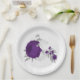 Romântica, roxo real e flores brancas com folhas prateadas, placa de papel botânico.