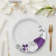Romântica, roxo real e flores brancas com folhas prateadas, placa de papel botânico.