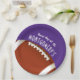 As placas de papel personalizáveis em 2 SIZES - 9" e 7" apresentam uma bola de futebol americana em roxo e as palavras "É o Dia do Jogo!" juntamente com o seu nome. Mais cores e itens correspondentes em nossa loja.