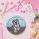 Ruas de animais, doações e acessórios criados pela imaginação! Design apresenta o nosso bonitinho bronzeado e personagem de cão branco parado num jardim com cerca vermelha de tijolos, um céu azul texturizado e uma bela e tortuosa fronteira púrpura pintada pelo talentoso artista de livros infantis Traci Van Wagoner. O filhote divertido fica em posição de jogo com uma pata levantada. Esta divertida arte de animais de estimação é perfeita para Ruas. Amantes de cães Bernard e amantes humorísticos de arte animal de todas as idades. Em muitas das nossas Ruas brancas. Produtos de cães Bernard você encontrará esse filhote fofo giro vindo e indo com a cabeça do Santo Bernard de um lado e a cauda do cachorro engraçado do outro. Junte-se à Parada Animal e traga um sorriso à cara de alguém que você ama com um presente da nossa Rua querida. Puta!