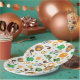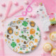 Placas de papel com um padrão repetitivo fofo com um monte de Ruas. Imagens temáticas do Dia de Patrick. Botas e chapéus de duende verdes, cachimbo, cerveja, cavalo, trevo, shamocks e um pote de ouro, todos se unem para fazer um padrão festivo de férias.