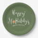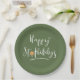 Coloque uma mesa divertida para a Rua. O Dia de Patrick com esta placa de papel que apresenta a tipografia na moda da frase 'Ruas Felizes. Paddy's' em todas as cores da bandeira irlandesa; texto branco decorado com uma haste laranja sobre fundo verde. Procure ID336 para ver outros produtos com este design.