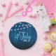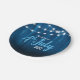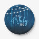 Esta placa de papel do CHURRASCO de 4 de julho apresenta um fundo azul-escuro rústico de madeira acentuado com cordas de luz. Isto é perfeito para o churrasco do quintal da sua família em 4 de julho.