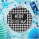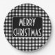 Prato De Papel Rustic Black & White Buffalo Plaid Merry Christmas