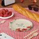 Uma design de Natal ousada e festiva com flores vibrantes de amarilis vermelho, folhas sagradas e verde de inverno. O rico quadro botânico cria uma sensação quente de feriado rústico, perfeita para enviar saudações sazonais alegres.