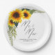 Prato De Papel Rustic Sunflower Script Sr. e Sra. Wedding