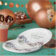 An elegant custom paper plate for your rustic winter wedding or bridal shower with a snow covered country mountain scene.