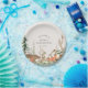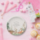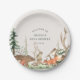 Woodland themed baby shower paper plates featuring rustic winter forest and animals design with personalized name and date.