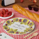 Rústica Weathered White Wood Bride e nomes de noivos, prato de papel amarelo-sol country