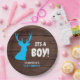 Chapas de papel de chá de fraldas personalizadas/personalizadas e únicas, com tema de madeira de veados de rocha rústica. São cartas do Boy. Cor azul e branca. Placas de modelo de papel editáveis - basta adicionar seu texto! Consiga guardanapos, convites e adesivos!
