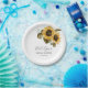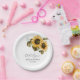 Placa de papel de chá de panela com tema floral, russa, com ilustração aquosa dos girassóis amarelos com o hálito do bebê.