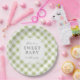 Prato De Papel Sage Green Gingham Xadrez Sweet Baby