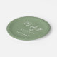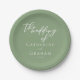 Prato De Papel Sage Green White Script Personalizado Casamento