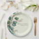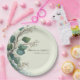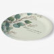 Um prato de papel de eucalipto verde sage elegante com vegetação boho em aquarela perfeito para celebrações de casamento e chá de bebê.
