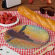 Este design apresenta um famoso quadro impressionista de Claude Monet (1840-1926). Faz parte de uma série de pontos de vista da ilha do mosteiro de San Giorgio Maggiore (no dialeto veneziano San Zorzi Mazor): a sua igreja paladiana é um marco importante de Veneza. Monet sentiu que Veneza era uma cidade "muito bonita para ser pintada", no entanto, aqui ele elegantemente capturou a beleza de um pôr do sol colorido, em vários tons de vermelho, laranja, amarelo e azul. A pintura original foi completada em 1908 e está atualmente no Museu Nacional de Cardiff, País de Gales.