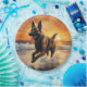 Prato De Papel Sandy Paws Cachorro Malinois Belga em Beach Sunset