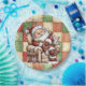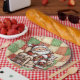 Funny Santa Claus having fun in the outdoors on a Christmas-y background.