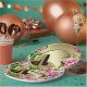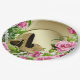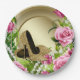 Pratos de papel rosa e dourado com rosas cor-de-rosa elegantes e sapatos de salto alto dourados em um belo fundo de pérolas douradas. Você pode adicionar seu texto para personalizar estes belos pratos de papel rosa e dourado.