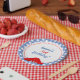 Prato De Papel Sapatos Vermelhos Xadrez Azul e Branco Gingham OZ