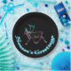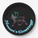 Uma renderização brilhante, semelhante a neon, de uma rena, também conhecida como rena. A leitura de texto "Saudações da Estação" aparece em azul e branco brilhantes. Inspirado pelas luzes do Norte.