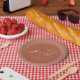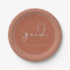 Script de assinatura "formando", placas de papel de festa de formatura. Tipografia branca sobre fundo laranja ferrugem com delicada borda do padrão deco.