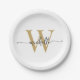 Prato De Papel Script de Nome do Monograma Personalizado Dourado
