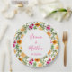Simples escrita floral elegante cor-de-rosa e laranja com placas de papel de casamento cor-de-rosa para a sua recepção de casamento, janto de ensaio e chá de panela.