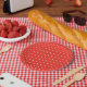 Prato De Papel Seamless red background polka dot pattern