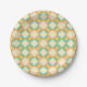Seamless retro pattern with rounded squares in peach, teal, and cream hues, outlined in orange. Mid-century modern style, conveying a vintage, playful tone.